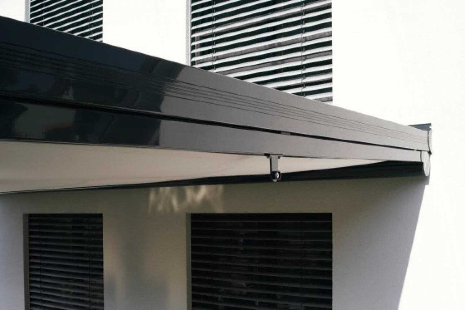 Durch die Anbringung unterhalb des Glasdaches ist Ihre Wintergarten-Markise vor Wind, Regen und Verschmutzung geschützt.
